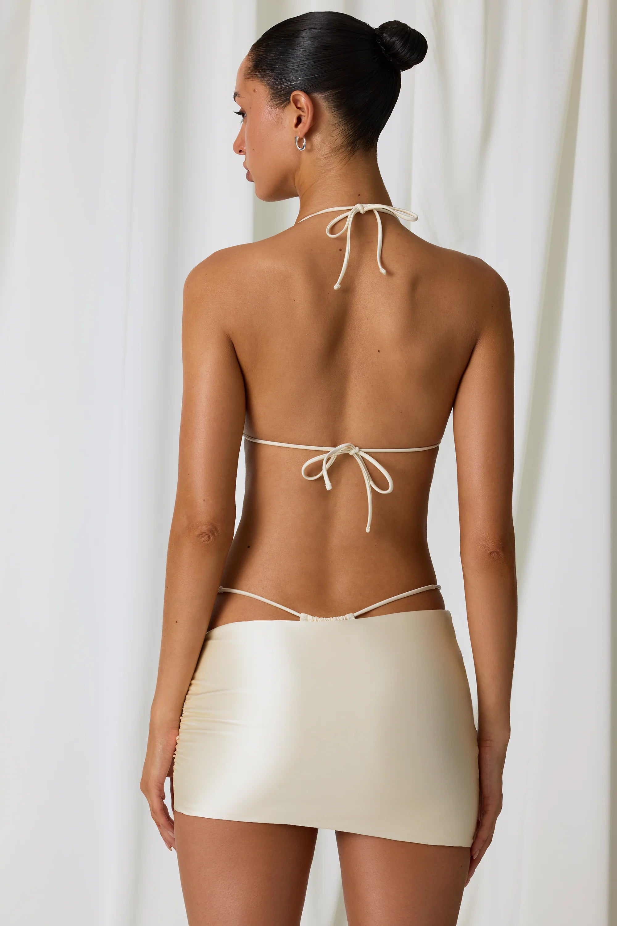 Go from beach to bar with the Reef micro mini skirt. Designed as the perfect cover-up for endless beach days, it’s crafted from premium stretch-tricot swim fabric with a lustrous satin finish. It’s cut to a bodycon silhouette with perfectly placed ruching at the side that creates a universally flattering asymmetric look.