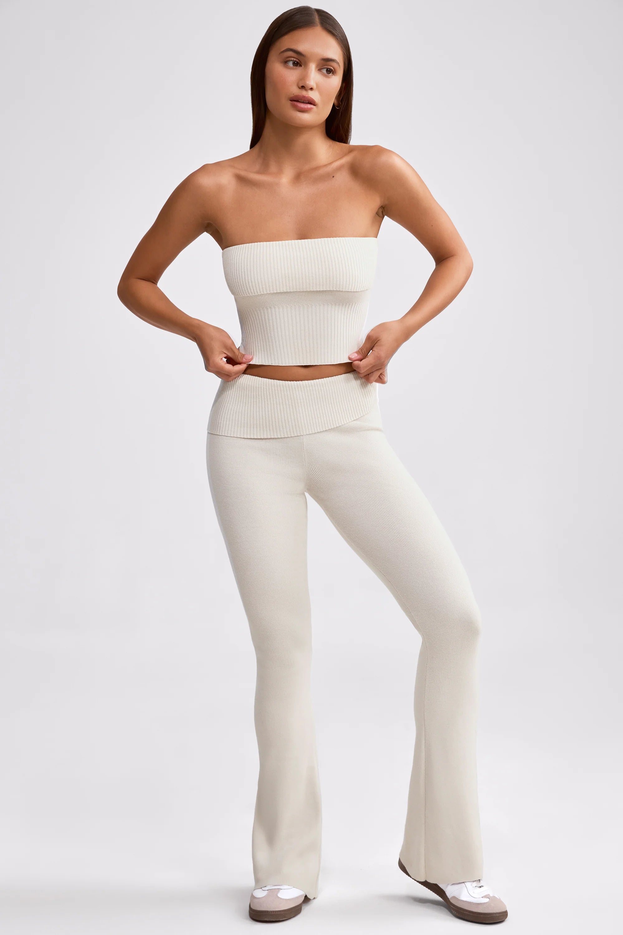 The Perfect Base. Ideal for creating coordinating everyday looks, this cropped bandeau top is spun from our premium chunky-knit fabric with a touch of stretch for added comfort. It’s cut to a foldover bandeau neckline and complete with ribbed trims.