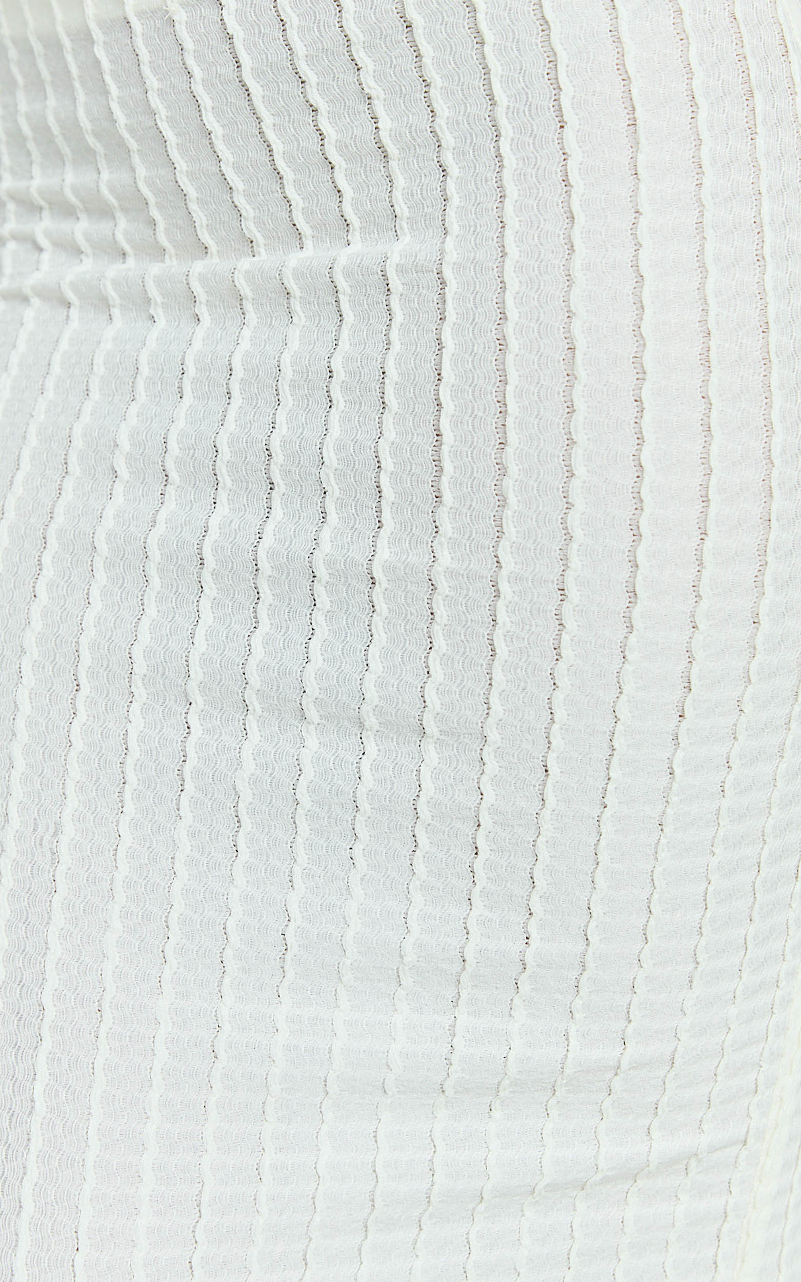 This column textured jersey skirt in off white skims your curves and nails that quiet luxury look, polished, yet totally understated. The sleek silhouette creates a statement outfit whether paired with a matching cropped top or clashed with sheer skirts for an edit-worthy layered moment.