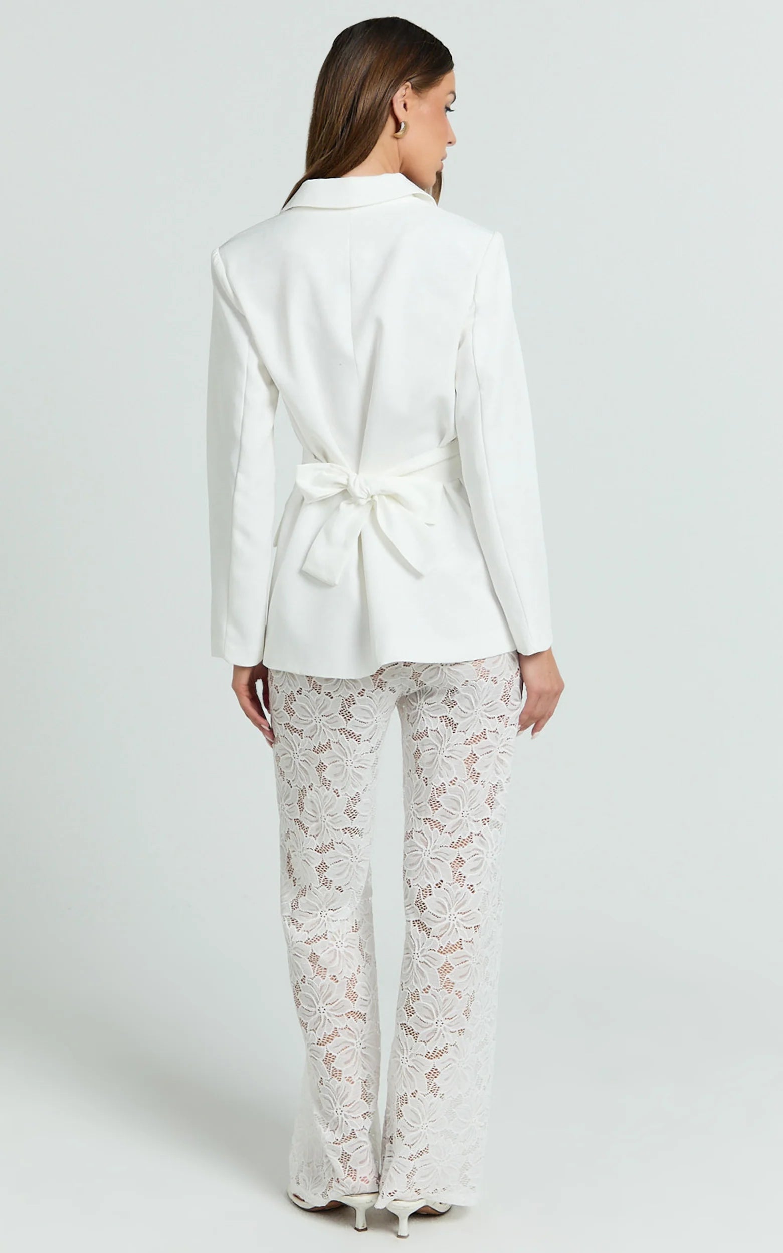 The Caryl Two Piece brings together a wrap waist blazer and lace pant for a look that’s both powerfully tailored and delicately detailed, ready to take you from rooftop brunches to special nights out. Its trending silhouette pairs seamlessly with chunky Dune Sandals or Iro Ballet Flats, letting your shoes do all the talking while you move with effortless flair.