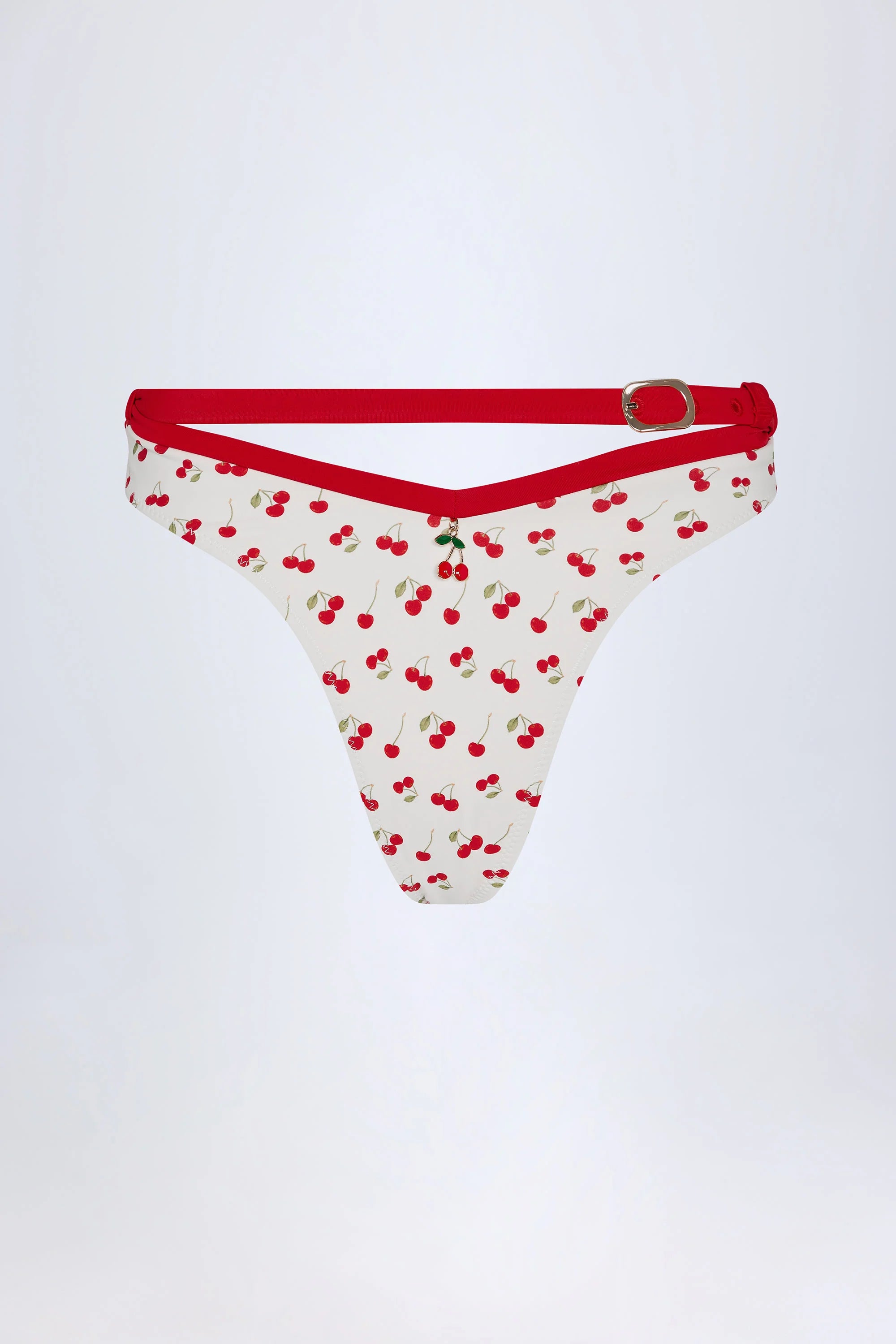 Fresh prints, instant impact poolside. Designed to make a statement, the Aegina bikini bottoms are cut to a high-leg silhouette with a low-rise V-front design and detachable contrasting belt. They’re crafted from our premium stretch swim jersey, feature a glossy cherry hardware charm and are designed with minimal thong-back coverage.