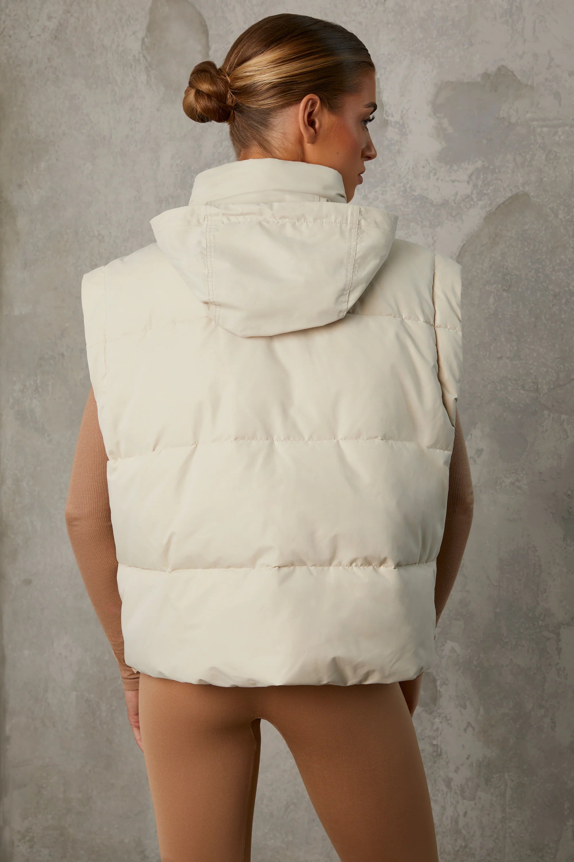 Versatile outer layers. An effortless, relaxed silhouette that combines functionality and style, the Essential puffer jacket is a cropped design with a concealable hood and detachable oversized sleeves. Created from our 100% recycled polyester fabric, Essential is complete with side and pass pockets and a comfortable fleece lined collar.