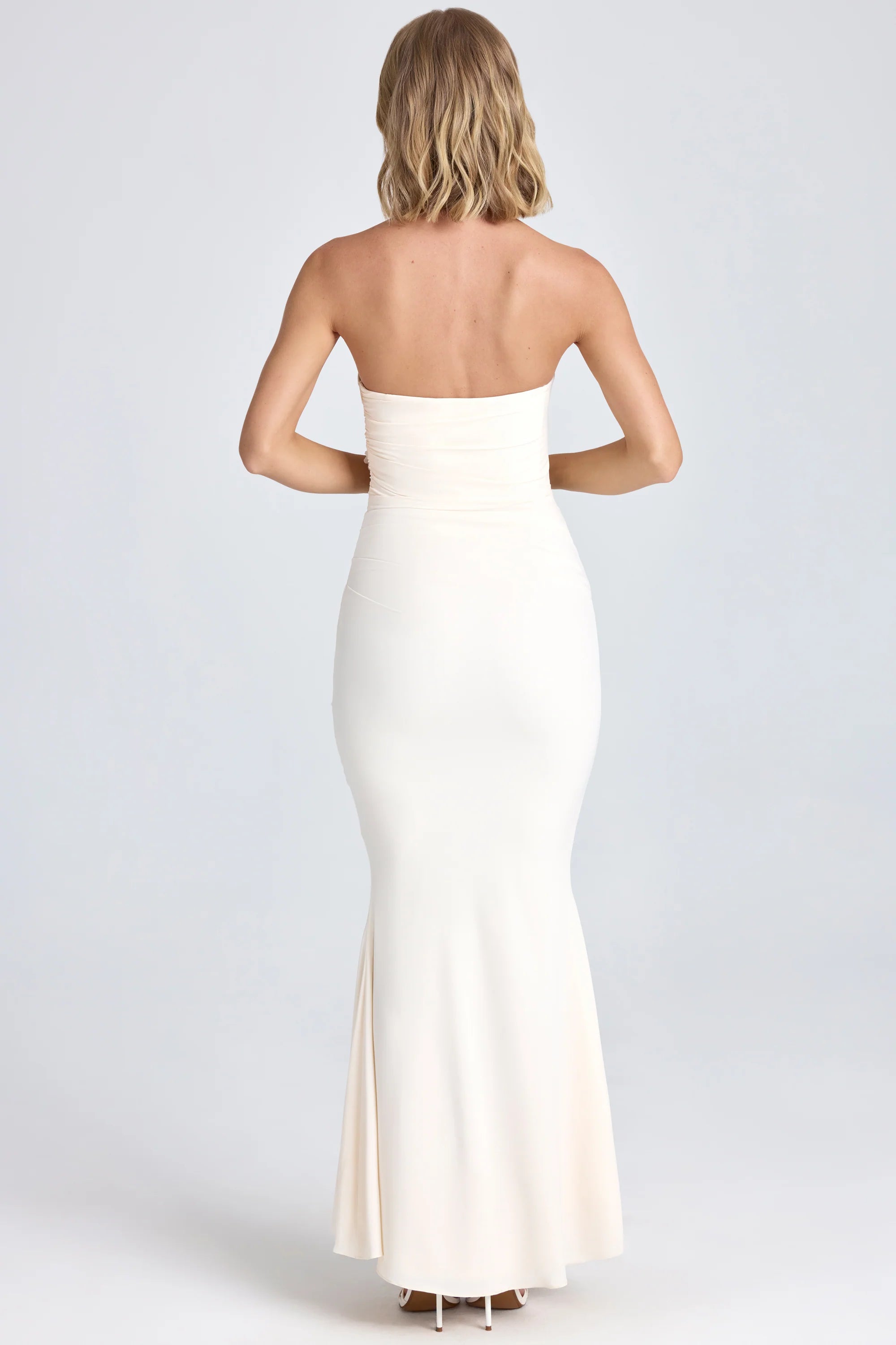 Pretty florals. Inspired by the beauty of botanical gardens in high summer, the Aveline maxi dress is traced with hand-applied floral appliqués that highlight the sculpting fishtail silhouette. Crafted from lightweight georgette that hugs your curves, it’s rendered in two timeless hues and enhanced with perfectly placed ruching at the sides. The slender adjustable straps can be removed for multiple styling options.
