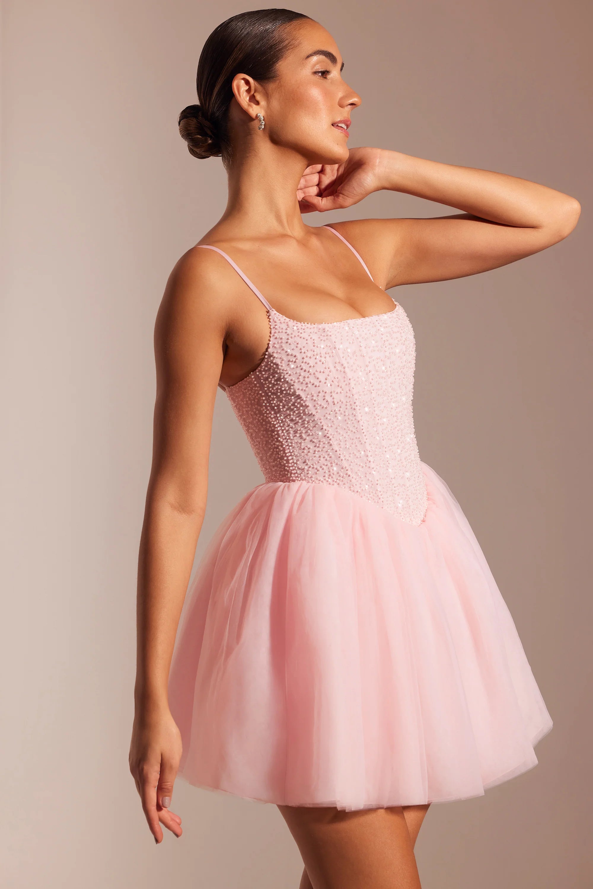 Live out your fairytale era. An enchanting silhouette perfect for memorable evenings, the Eugenie mini dress features a built-in corset that works to sculpt and support your frame. Designed with a power mesh corset base that’s fully embellished with hand sewn beading, Eugenie is complete with a voluminous tulle skirt.