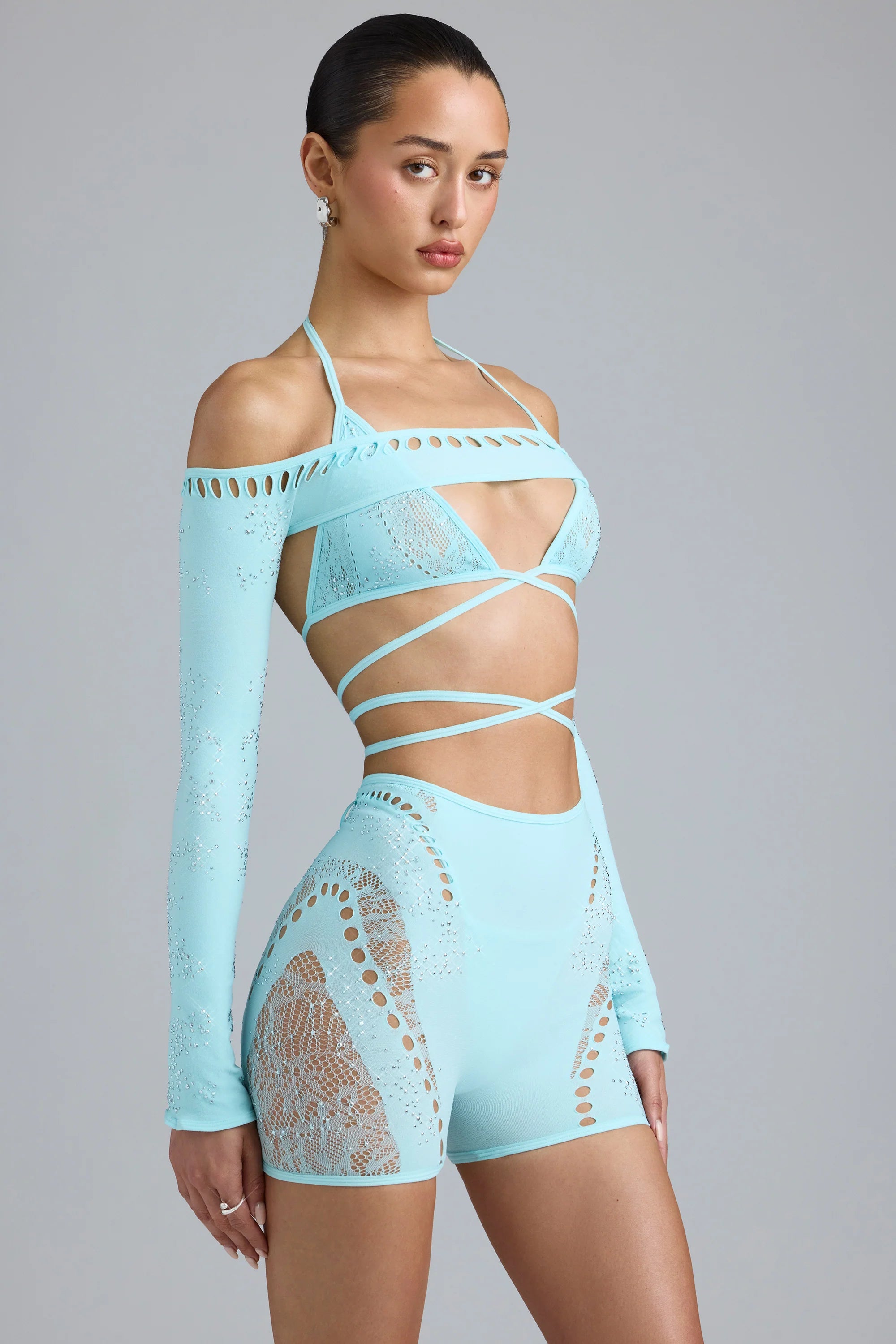 A festival essential you’ll reach for again and again. The perfect finishing touch for any look, the Pixie cropped shrug is made from our premium seamless knit fabric, peppered with laser-cut elements and sparkling rhinestones. It’s designed to sit off the shoulder, creating a statement multi-strap look when paired with halterneck styles.