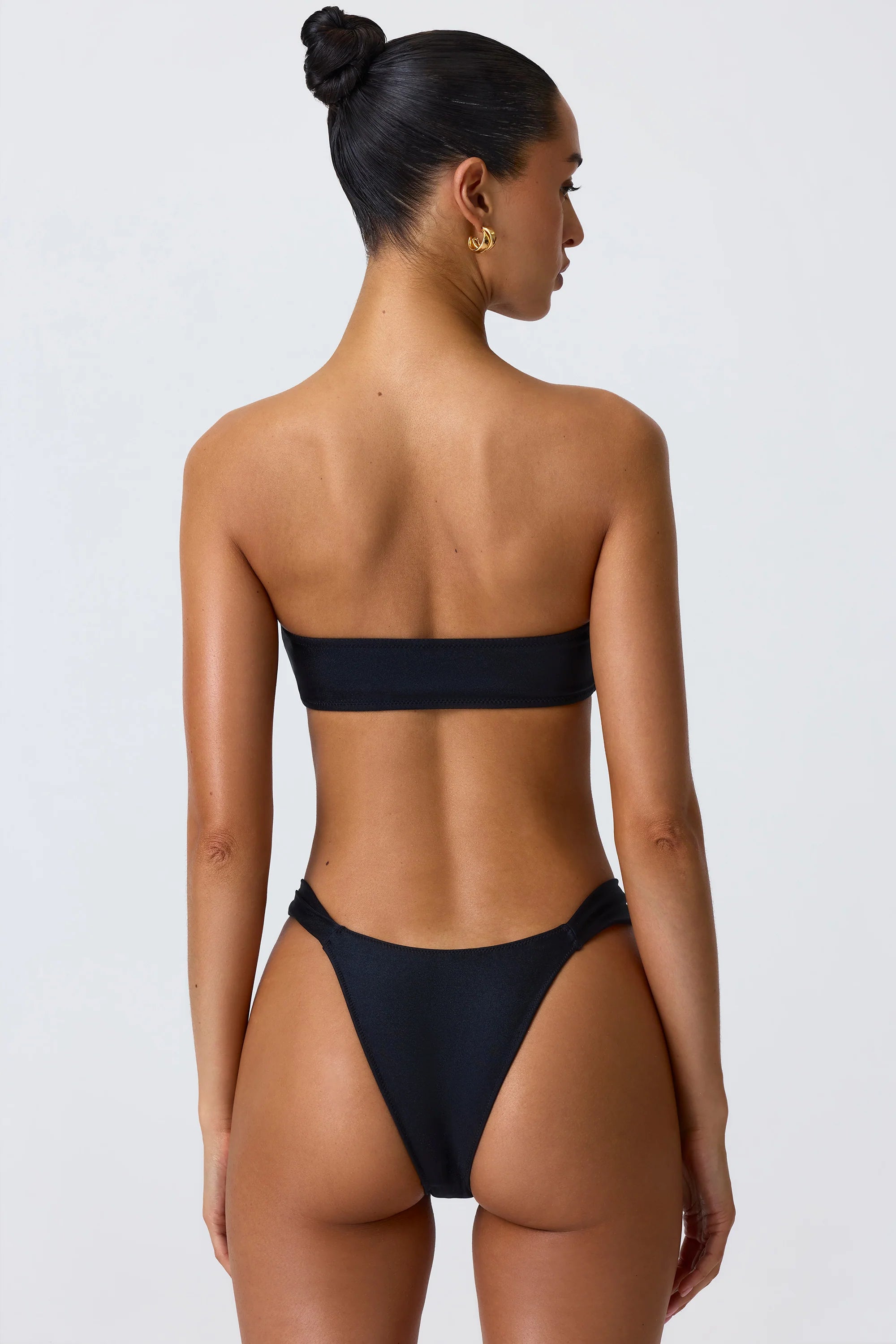 Beach club styling made easy. Perfect for minimising tan lines on sun-soaked days, this bikini top is crafted from stretch-jersey swim fabric to a bandeau silhouette with internal silicone taping for enhanced hold and support. It’s uplifted with a statement cut-out at the bust, anchored with hammered gold-tone ring detailing.