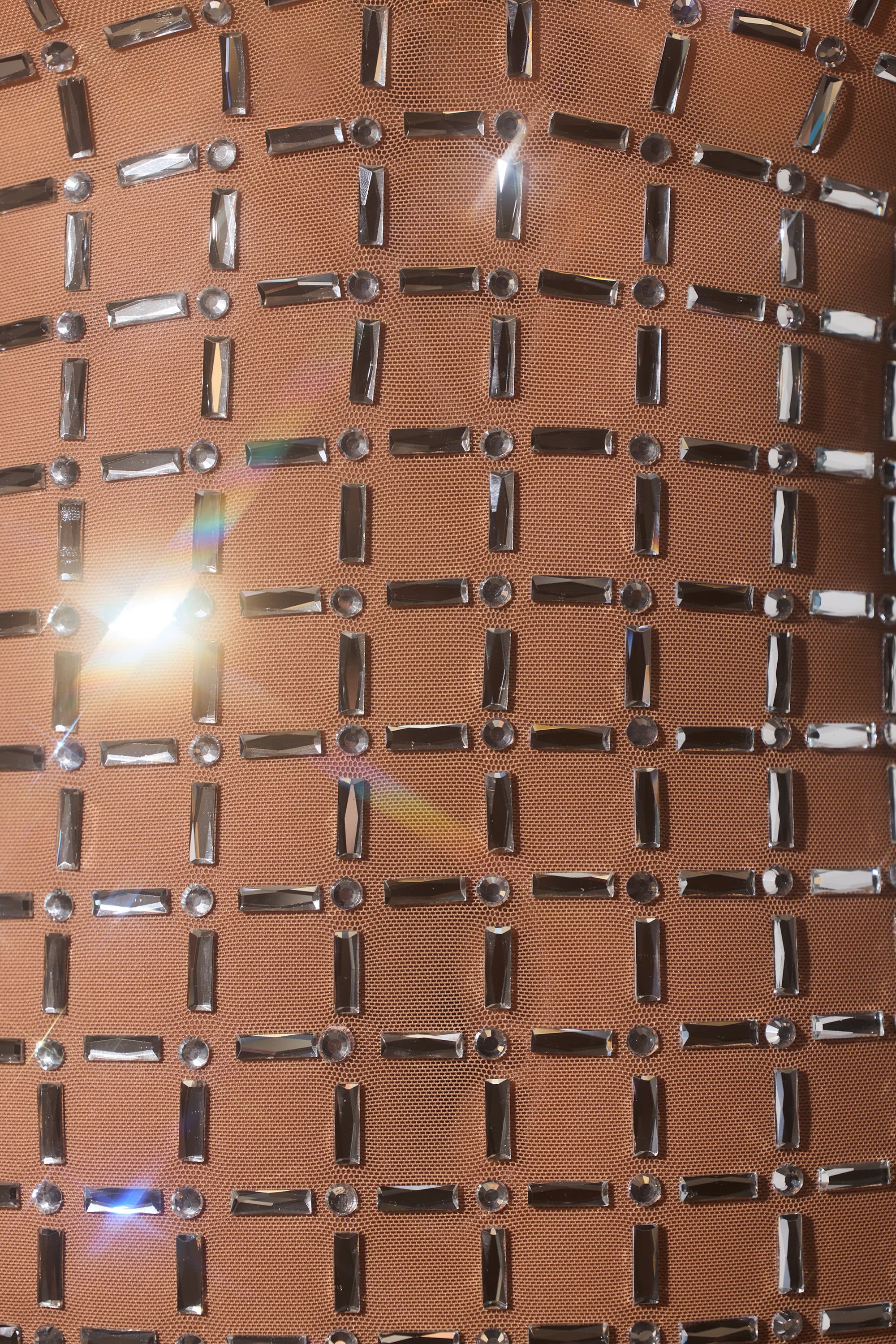 Modern glamour meets elevated design with the Ilana mini dress. A semi-sheer design crafted from premium 40D power mesh, it’s cut to a figure-skimming A-line silhouette and saturated with custom HOTFIX embellishments arranged in a grid-like pattern for high-impact sparkle. It features a keyhole cut-out at the front mirrored with an open back and darts at the bust for enhanced shaping.