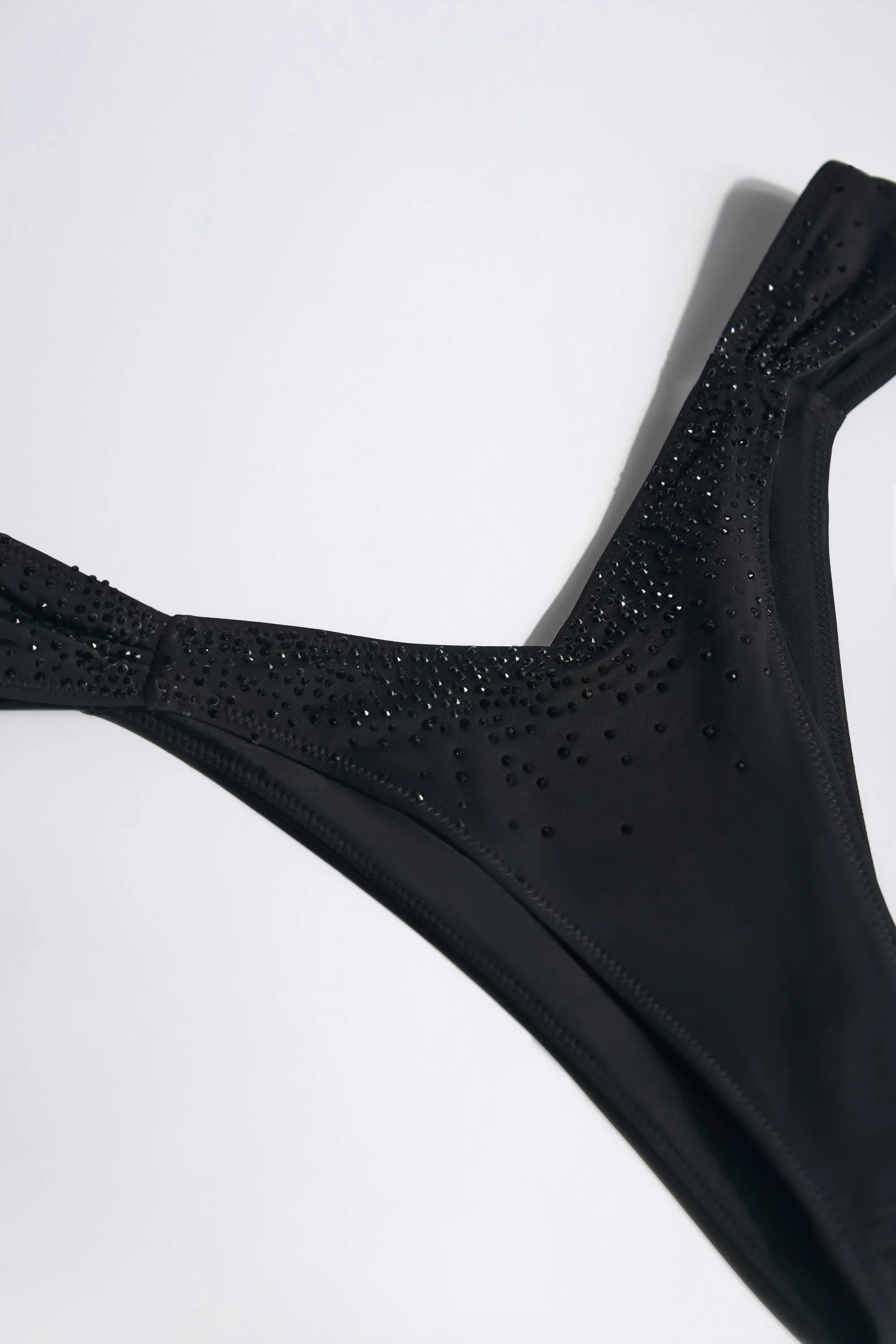 Made for maximum impact. Crafted from our premium stretch-jersey swim fabric, the Aruba bikini bottoms are designed for making a statement poolside or at the beach club. They’re embellished with sparkling HOTFIX embellishments, cut to a high-leg cheeky silhouette with a universally flattering V-shaped waistband and ruched detailing that enhances your shape.