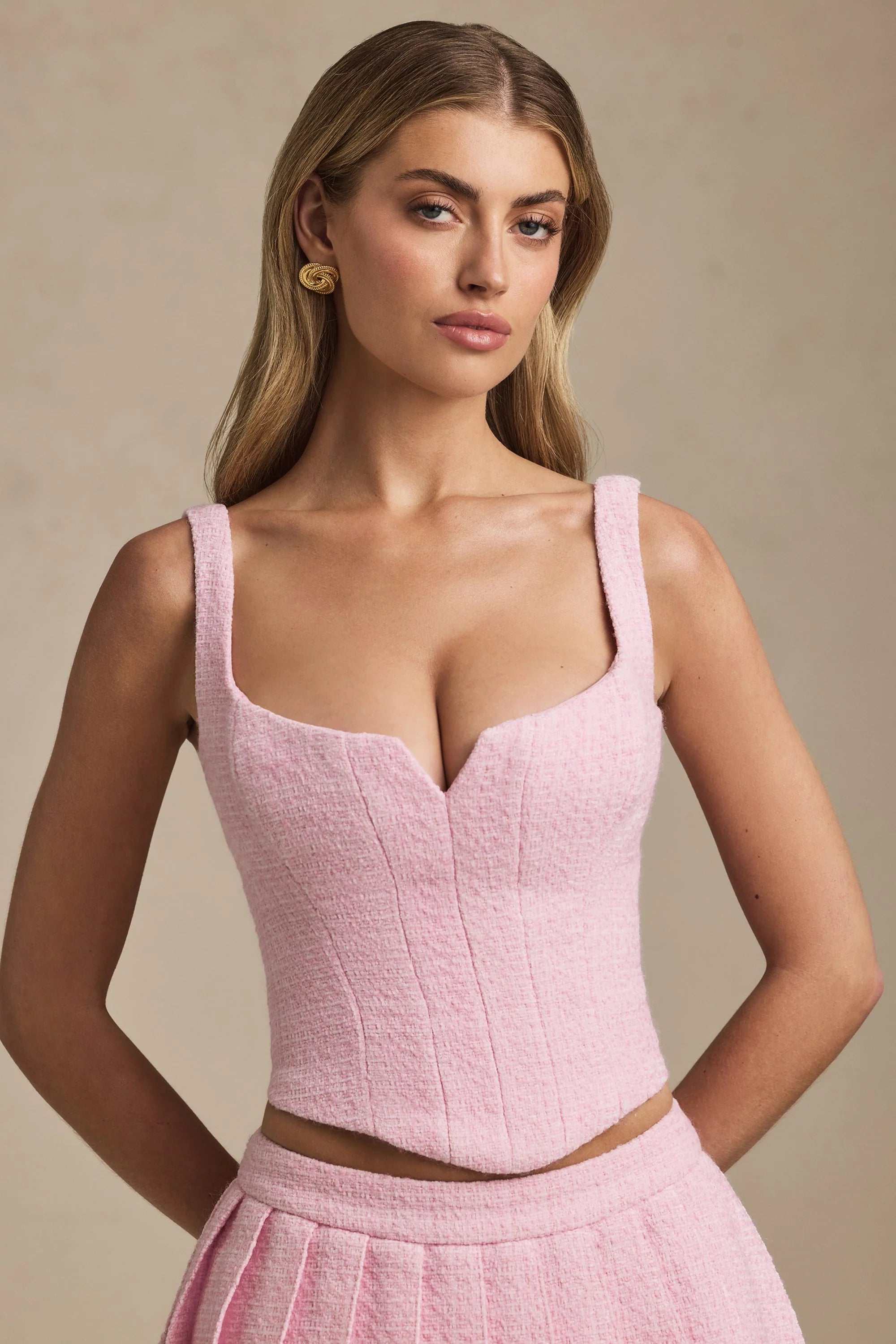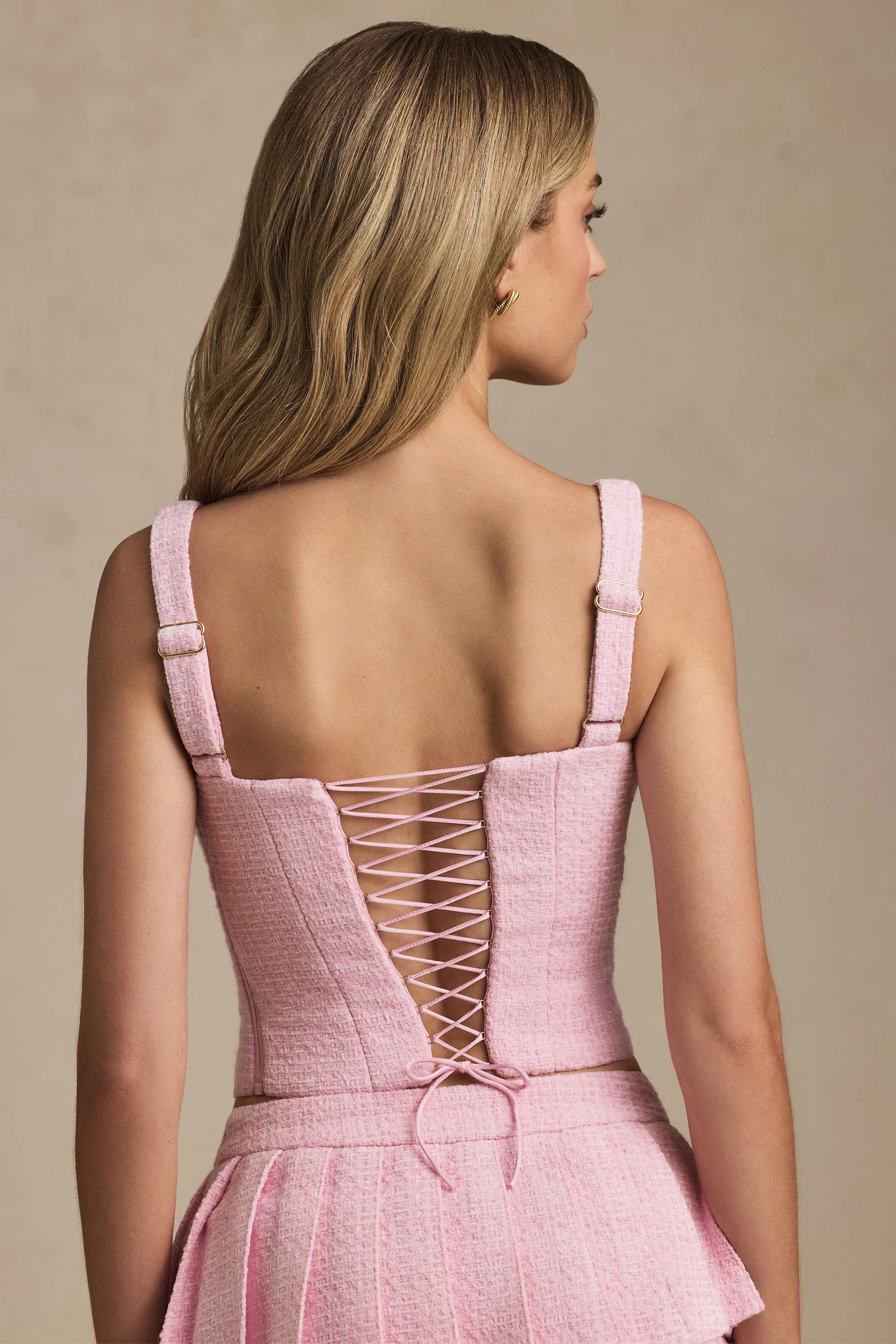 Soft structure. Perfect for dressing up or down, the Nami corset top is crafted from premium textured tweed to a lightly structured silhouette with boning and an adjustable lace-up back for enhanced support. It’s designed with a V-shaped silhouette to define your curves and framed with a notched square neckline.
