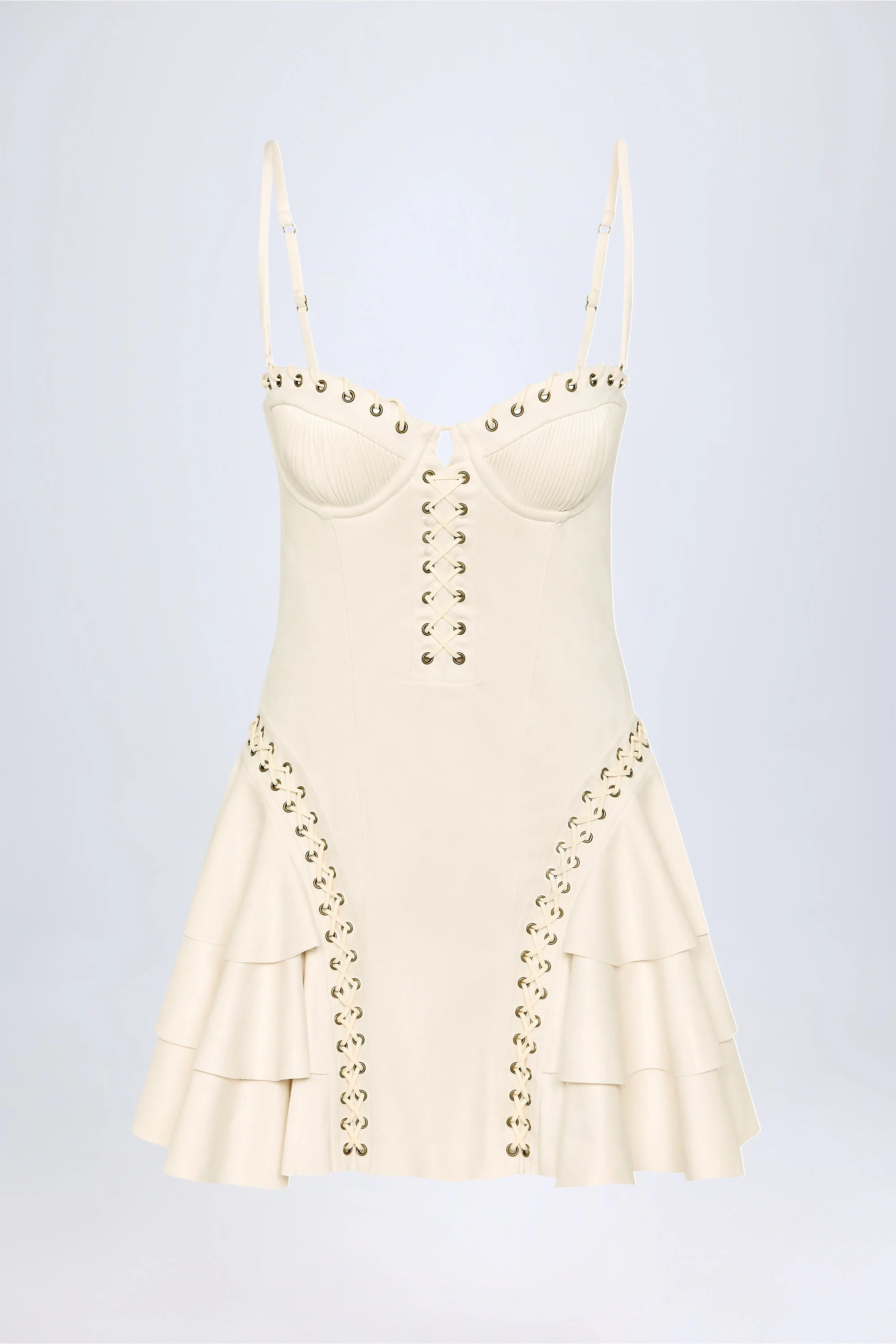 Western spirit. Perfect for summer dressing and festival season, the Hendrix mini dress is crafted from premium, soft-touch faux suede with a supportive corset bodice, complete with ruched moulded cups, and features a flared mini skirt with a dynamic tiered design. It’s elevated with tonal topstitching, decorative eyelets and lace-up detailing that brings the aesthetic to life.