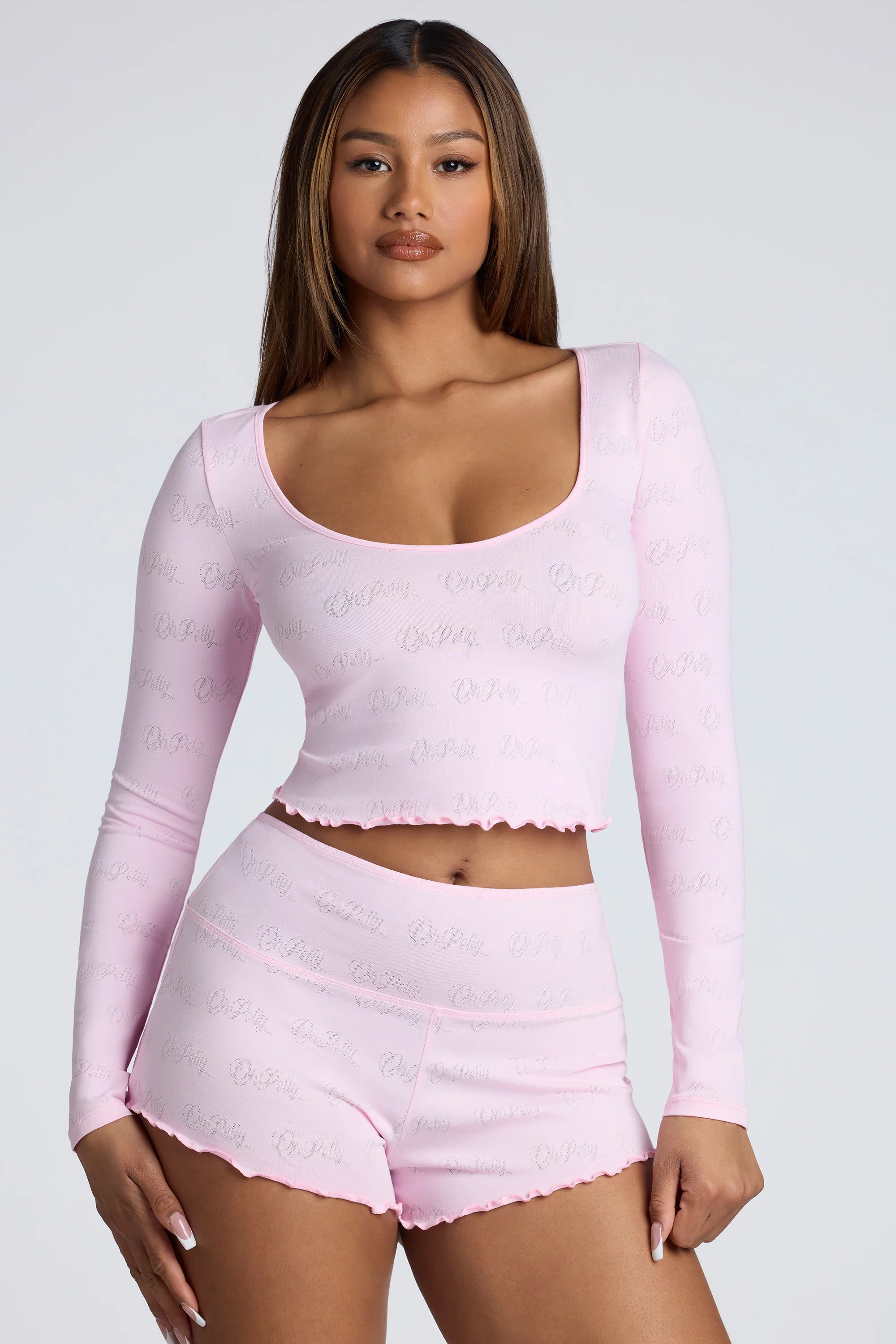 You’ll never want to take off our fun and flattering Loungewear. Cut from our lightweight and stretchy pointelle jersey fabric, the Loungewear mini shorts feature Oh Polly embossed branding throughout. Your go-to for cosy days at home, this snug wardrobe staple is complete with a mid-rise waistband and pretty lettuce hem edging.