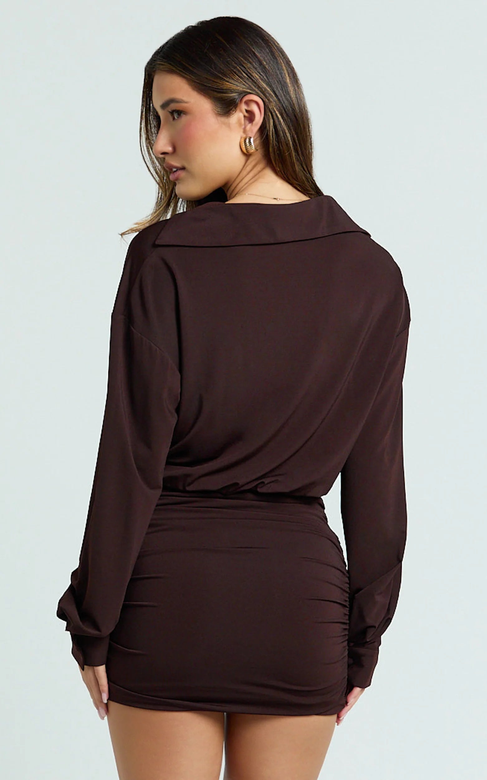 The deep brown hue is totally on-trend, making this mini dress your go-to for everything from brunch catch-ups to rooftop drinks. Play up those chic details by pairing Pearce with suede loafers for an elevated day look, or add Iro ballet flats and dainty gold accents for after-dark plans.