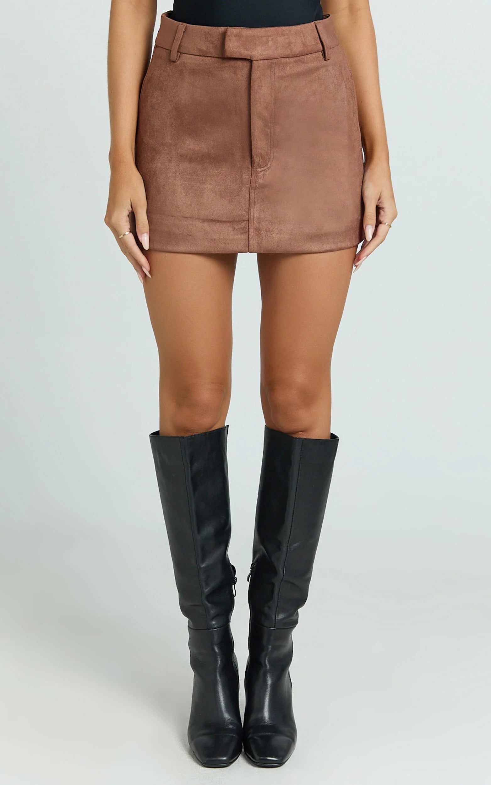 Crafted from soft faux suede in a warm tan shade, this mid-waist skirt brings a touch of everyday luxury and timeless elegance to your wardrobe. Versatile enough for any occasion, it's perfect paired with our Floral Bustier for romantic date nights, or layered playfully beneath one of our cosy Hourglass Jackets for daytime chic.