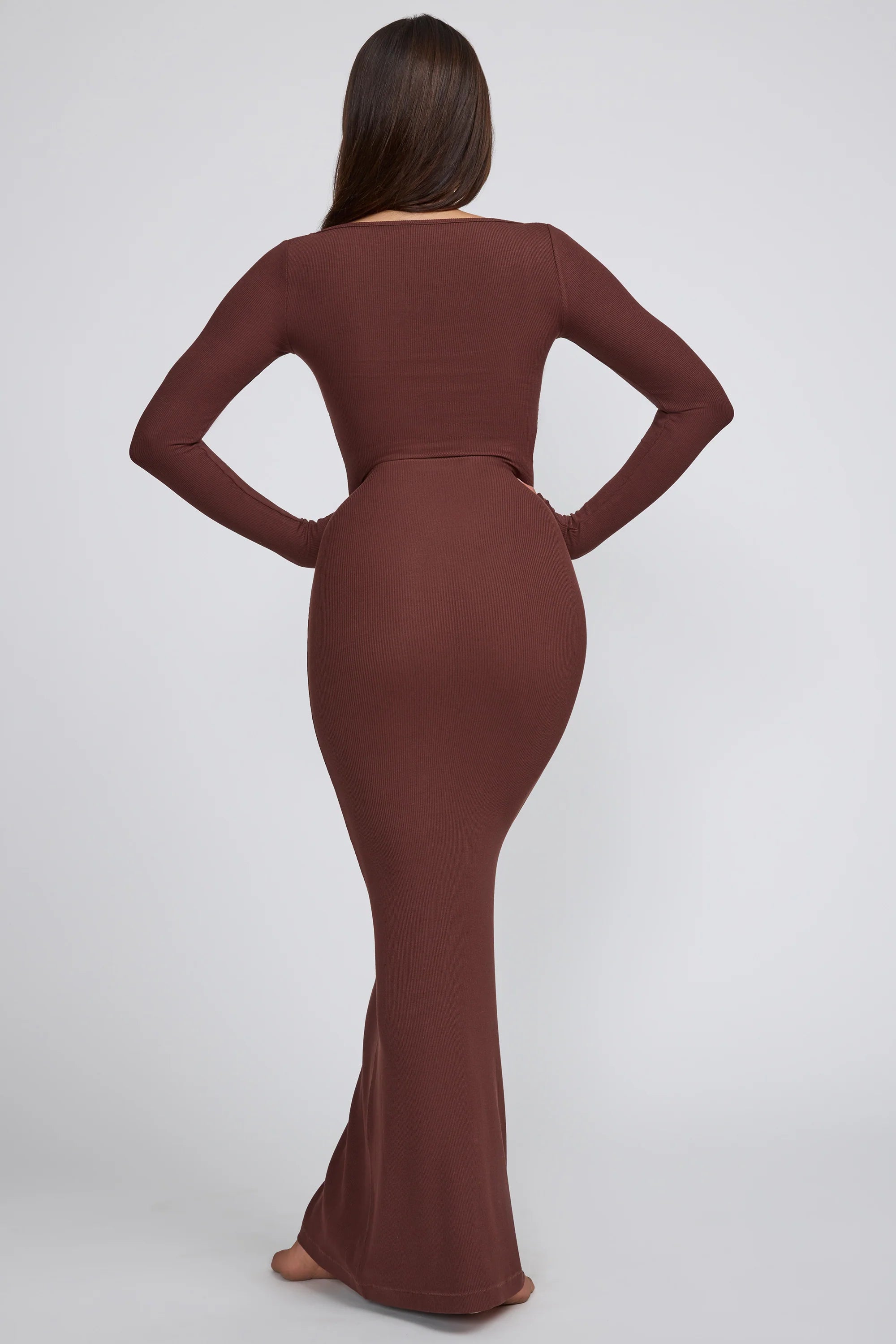 Modern minimalism. Blending style and sustainability, discover our Modal edit of elevated everyday staples and year-round wardrobe foundations. Crafted from low-impact TENCEL™ Modal fibres, the Jude maxi dress is a curve-enhancing bodycon silhouette that combines premium quality with a commitment to the planet. Featuring unmatched softness and breathability, this ribbed design is complete with a square neckline and long tight cut sleeves. Biodegradable and compostable, the TENCEL™ Modal fibres are sourced sustainably from beechwood trees.