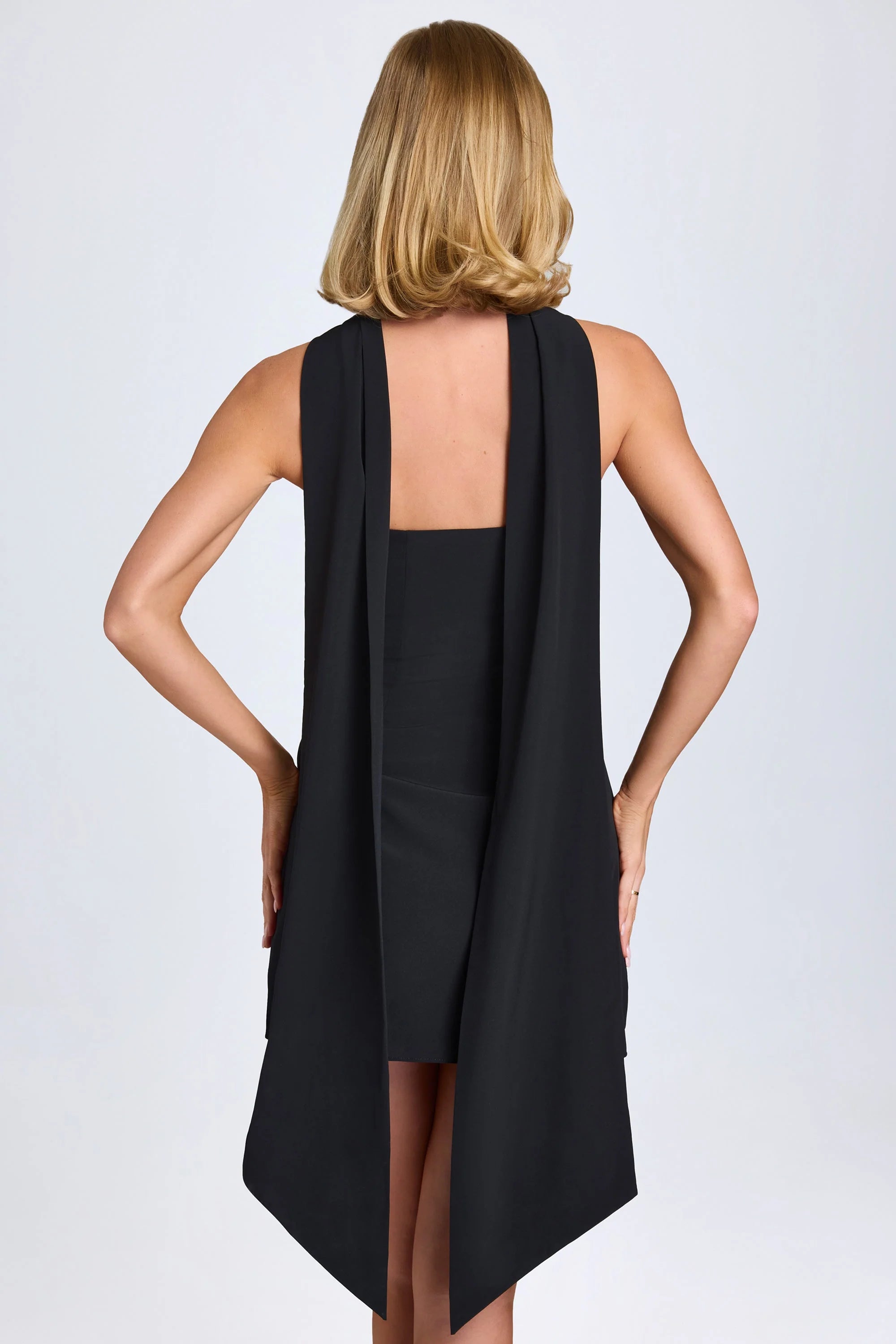 A contemporary take on a classic silhouette, the Cecilia mini dress is crafted from lightweight stretch georgette that skims your curves and is cut to a universally flattering A-line silhouette, enhanced with contouring seams. It’s framed with a bandeau neckline, secured with internal silicone tape, and comes complete with a coordinating scarf that can be styled to create multiple looks.
