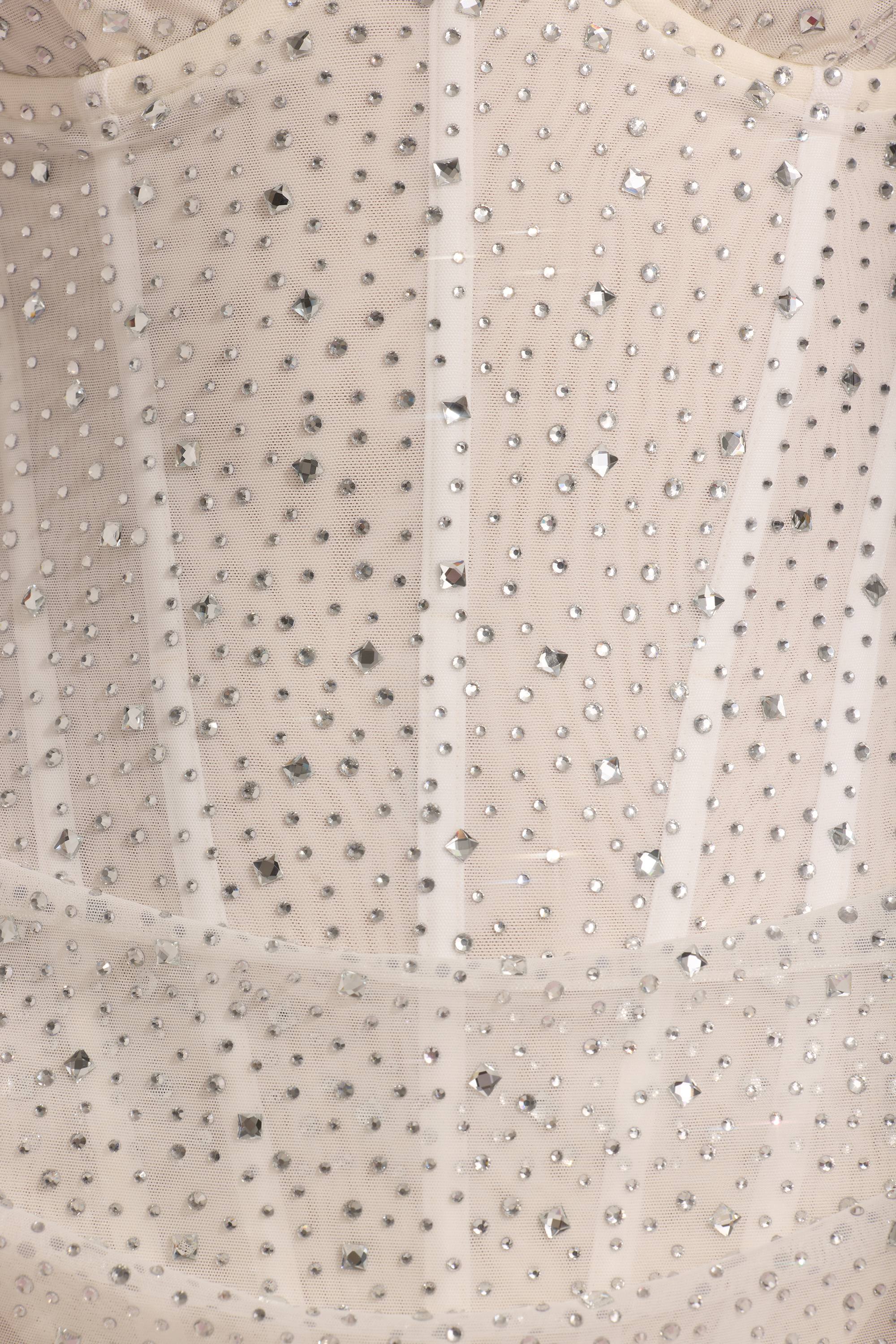 Designed to turn heads, the Connie mini dress is crafted from premium 20D stretch mesh with a boned corset bodice and built-in bodysuit for enhanced support and coverage. It’s overlaid with a sheer draped mini skirt and decorated with high-shine HOTFIX embellishments for signature sparkle to suit your most memorable occasions.