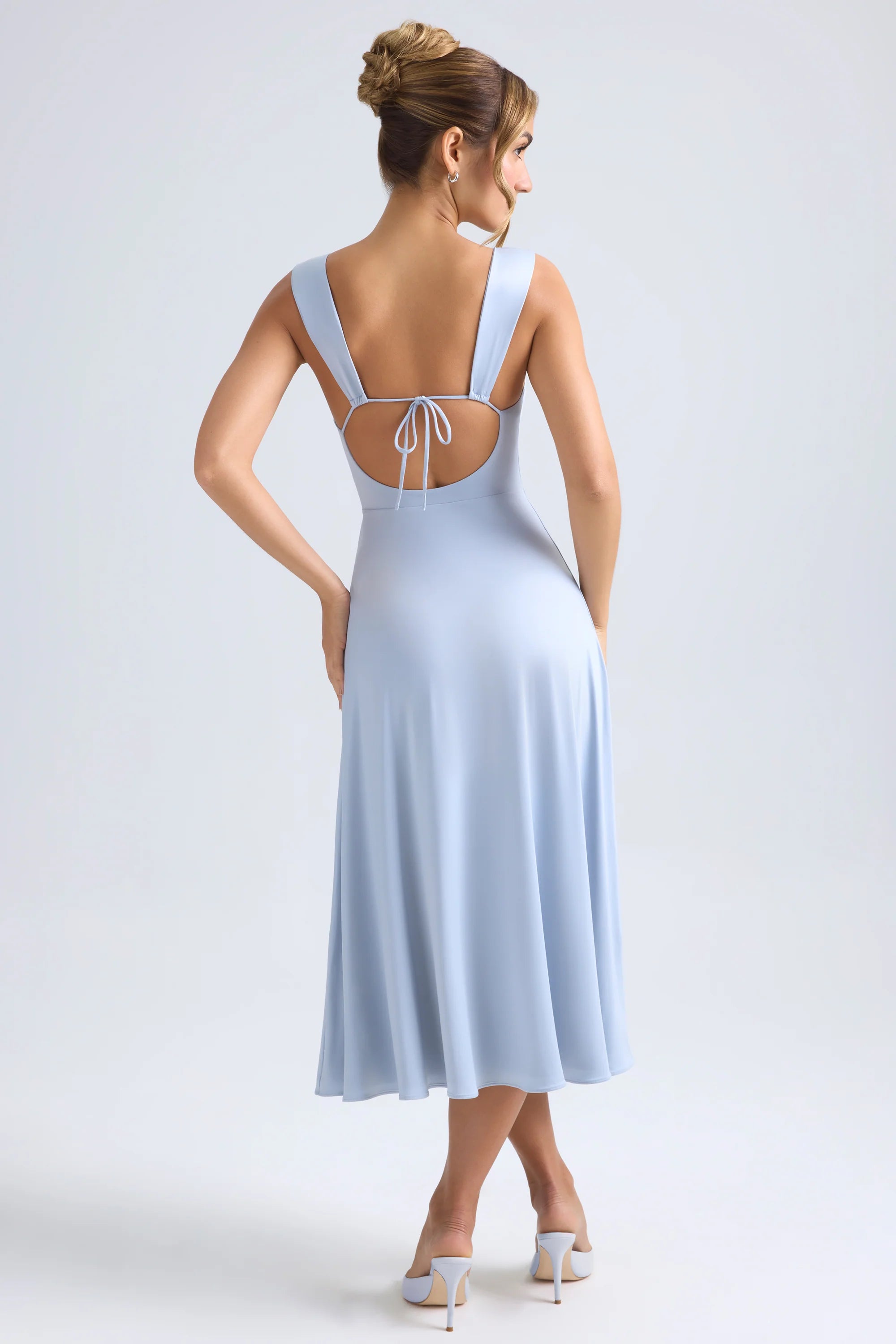 Summery silhouettes. Crafted from premium, lightweight slinky jersey, the Thandie midaxi dress is the perfect option for golden hour plans - think al fresco dinner dates or rooftop drinks. It’s cut to a breezy A-line silhouette with a full circle skirt, tempered by the fitted bodice and ruched sweetheart neckline. The curved cut-out at the back is anchored with adjustable ties and adds a statement touch.