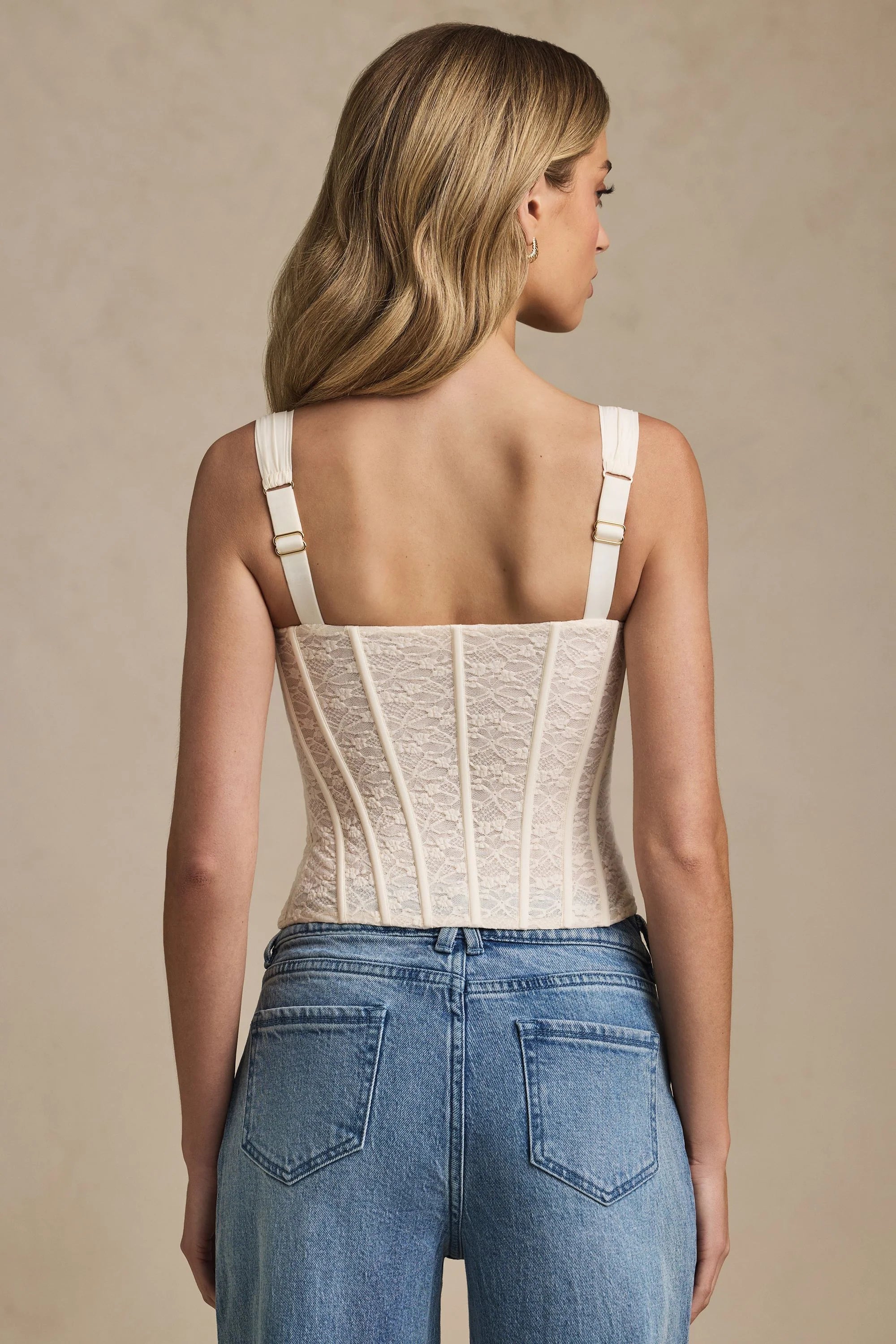 Designed to be dressed up and down, the Junia corset top is crafted from delicate floral stretch lace and underlaid with our sculpting 20D mesh for a figure-defining fit. It’s framed with a sweetheart neckline, adjustable tapered shoulder straps, underwired cups for enhanced support, and features contrast binding trims inspired by classic corsetry for a timeless, contoured look.
